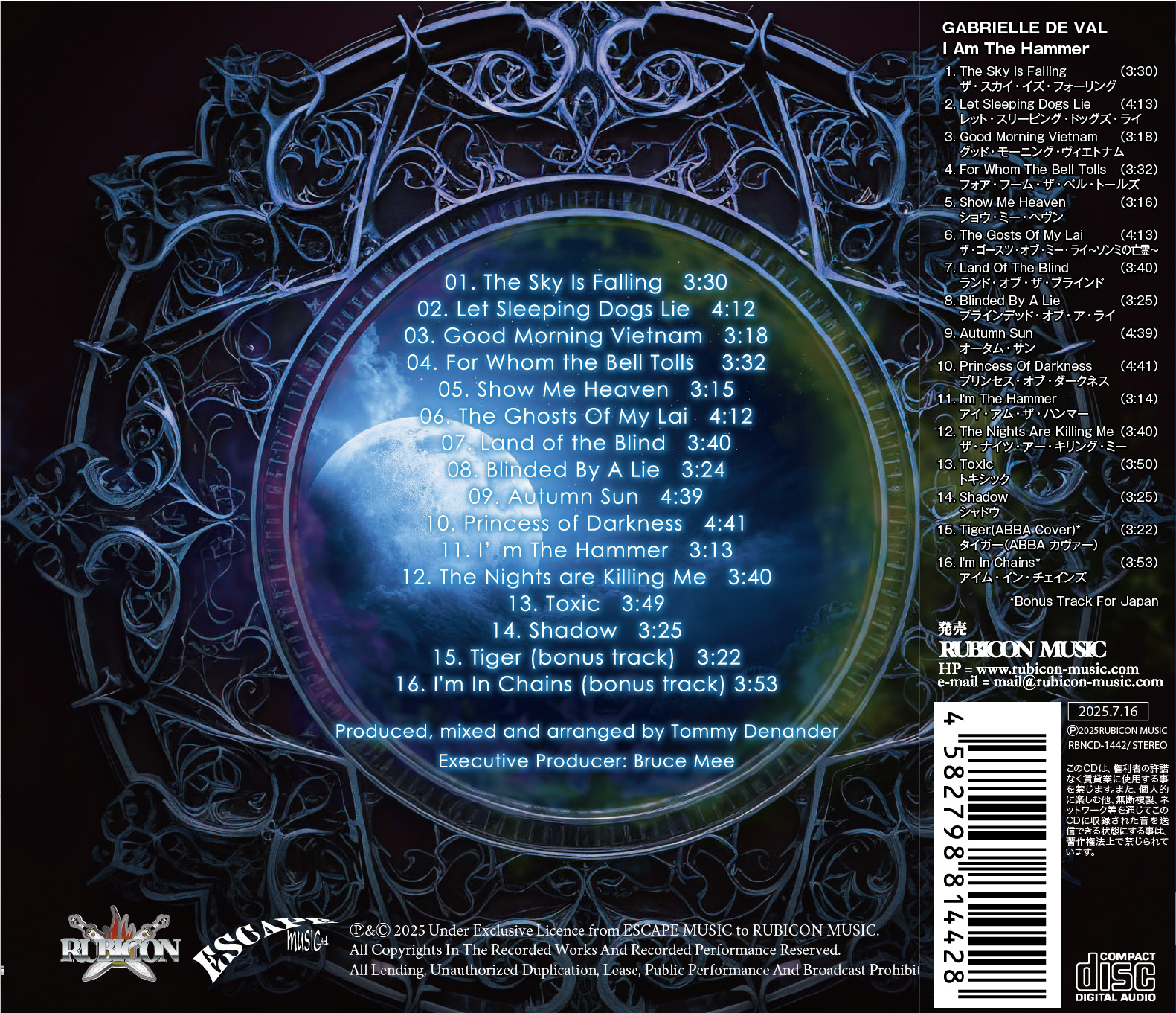 そして2024年英国・マンチェスターで行われた”FIREFEST”ではバックバンドを従え待望の英国ライヴを行い、それに合わせて、”GABRIELLE DE VAL AND THE DRAGONLORDS”名義のプロジェクト・アルバム『Tiger』(日本未発売)をリリースする等、精力的に活動。そしてここにセカンド・ソロ・アルバム『I Am The Hammer 』が完成した。