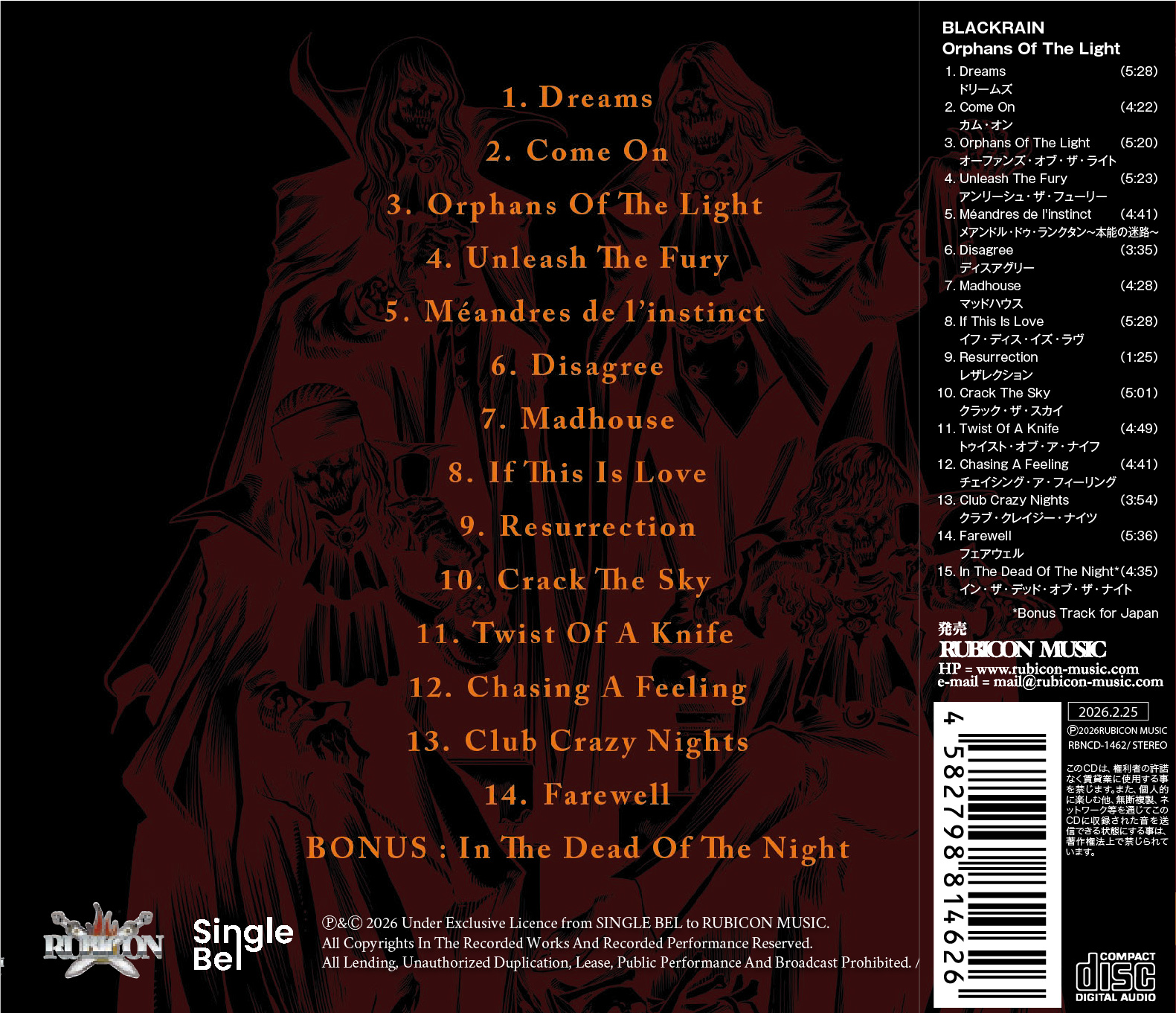 BLACKRAIN ブラック・レイン / Orphans of the Light (CD) 2026 8th (RBNCD-1462)